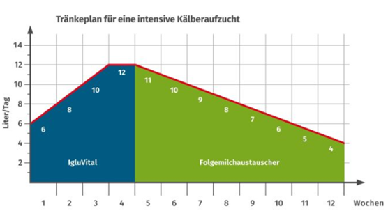 - Verwendung eines hochwertigen Milchaustauschers auf Milcheiweiß-Basis (Magermilch & Molkenprotein)