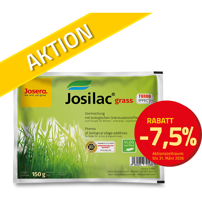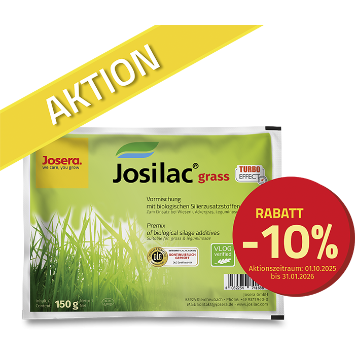 - 150g sind in einem Beutel Josilac grass enthalten - das reicht für 50 Tonnen Siliergut