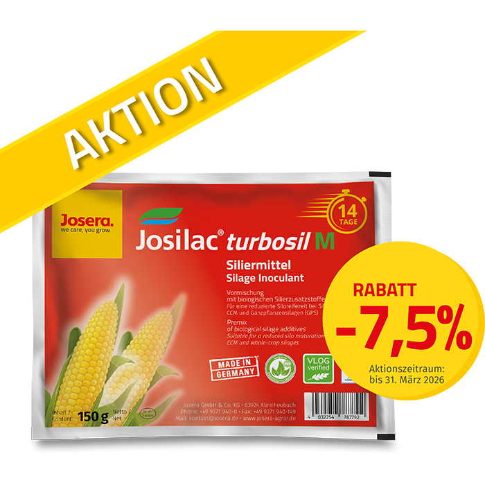 - 150g sind in einem Beutel Josilac turbosil M enthalten - das reicht für 50 Tonnen Siliergut
