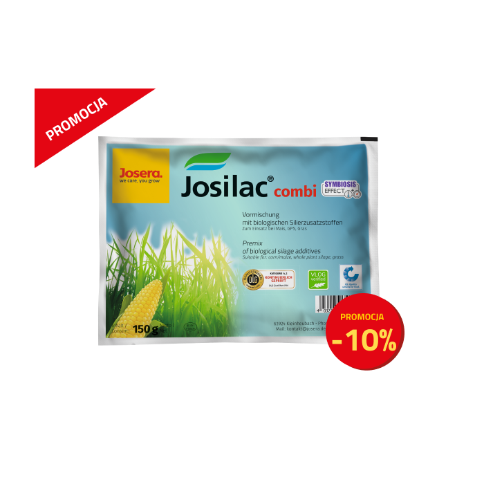 Zakiszacz bakteryjny Josilac Combi to wszechstronny, biologiczny konserwant przeznaczony do sporządzania kiszonek, zawierający w swoim składzie zarówno homo jak i heterofermentatywne szczepy bakterii. Zawarta w Josilac Combi formuła SYMBIOSIS-effect oparta jest na specjalnie dobranych szczepach bakterii kwasu mlekowego, dających maksymalny efekt w zakresie wartości żywieniowej i stabilności kiszonki. W fazie początkowej zakiszania homofermentatywne bakterie kwasu mlekowego stymulują intensywną fermentację mlekową, obniżając gwałtownie wartość pH. W dalszym przebiegu procesu fermentacji heterofermentatywne bakterie Lactobacillus buchneri, wytwarzają zrównoważoną ilość kwasu octowego, co z jednej strony utrzymuje stabilność kiszonki na dłużej, z drugiej zaś nie wpływa negatywnie na jej smakowitość.