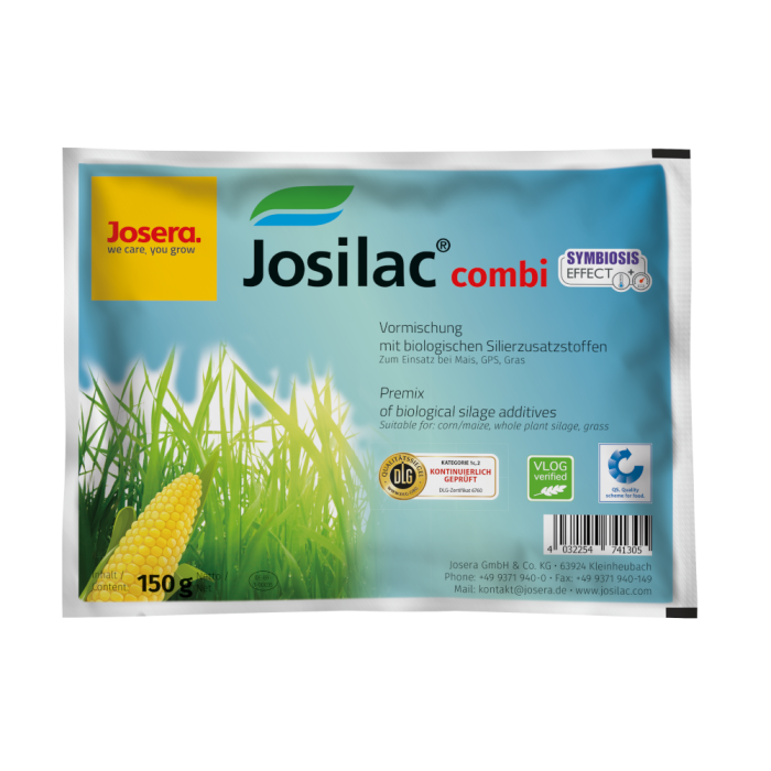 Zakiszacz bakteryjny Josilac Combi to wszechstronny, biologiczny konserwant przeznaczony do sporządzania kiszonek, zawierający w swoim składzie zarówno homo jak i heterofermentatywne szczepy bakterii. Zawarta w Josilac Combi formuła SYMBIOSIS-effect oparta jest na specjalnie dobranych szczepach bakterii kwasu mlekowego, dających maksymalny efekt w zakresie wartości żywieniowej i stabilności kiszonki. W fazie początkowej zakiszania homofermentatywne bakterie kwasu mlekowego stymulują intensywną fermentację mlekową, obniżając gwałtownie wartość pH. W dalszym przebiegu procesu fermentacji heterofermentatywne bakterie Lactobacillus buchneri, wytwarzają zrównoważoną ilość kwasu octowego, co z jednej strony utrzymuje stabilność kiszonki na dłużej, z drugiej zaś nie wpływa negatywnie na jej smakowitość.